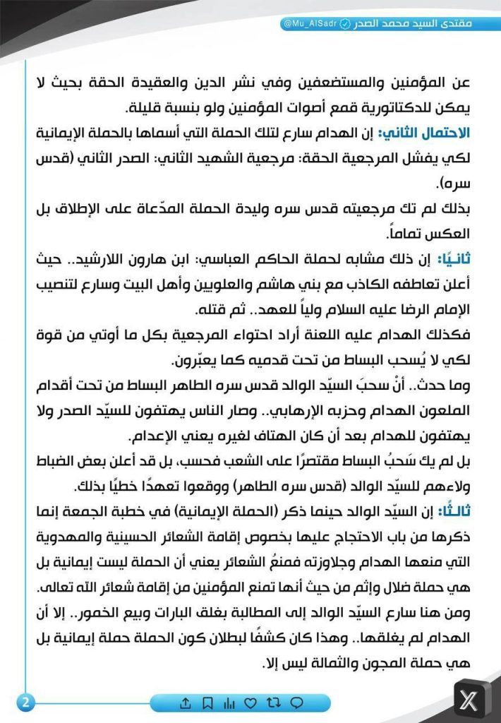 أخبار العالمنَشَرَ سَماحَةُ القائِد السَّيّد مُقتَدَىٰ الصَّدر (أعَزّهُ اللّٰهُ) فِي حِسابِهِ الشَخصِيّ عَلىٰ مِنصَّةِ التواصُلِ الإجتماعِيّ “إكس” بتاريخ ١٢ / ٥ / ٢٠٢٥ 2025-05-12 Admin فريق إعلامي من خريجو كليات الإعلام نشر الاخبار بدقة و حيادية و مصداقية التوثيق اليومي لأخبار العراق وأحداث الوطن العربي والعالم من خلال وسائل الإعلام