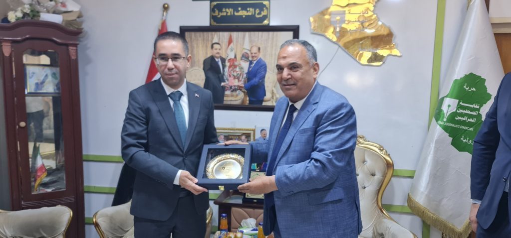 بتوجيهات نقيب الصحفيين العراقيين الأستاذ مؤيد اللامي استقبل الزميل الأستاذ إياد الجبوري فرع نقابة الصحفيين في النجف الأشرف القنصل التركي السيد جعفر أولجاي. وتم خلال اللقاء بحث سبل التعاون الثقافي والإعلامي بين محافظة النجف الأشرف وتركيا وكيفية تعزيز سبل ذلك التعاون منها تدريب صحفيين عراقيين في مؤسسات إعلامية تركية كما تم الاتفاق على توأمة مؤسسات إعلامية وتسهيل منح الفيزا للصحفيين.